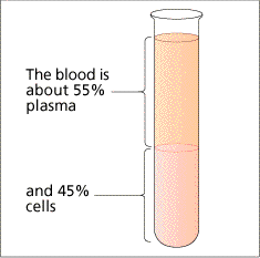 Although blood looks like a red liquid, if some is left in a test tube it separates out into a pale liquid called plasma and a solid layer of blood cells.